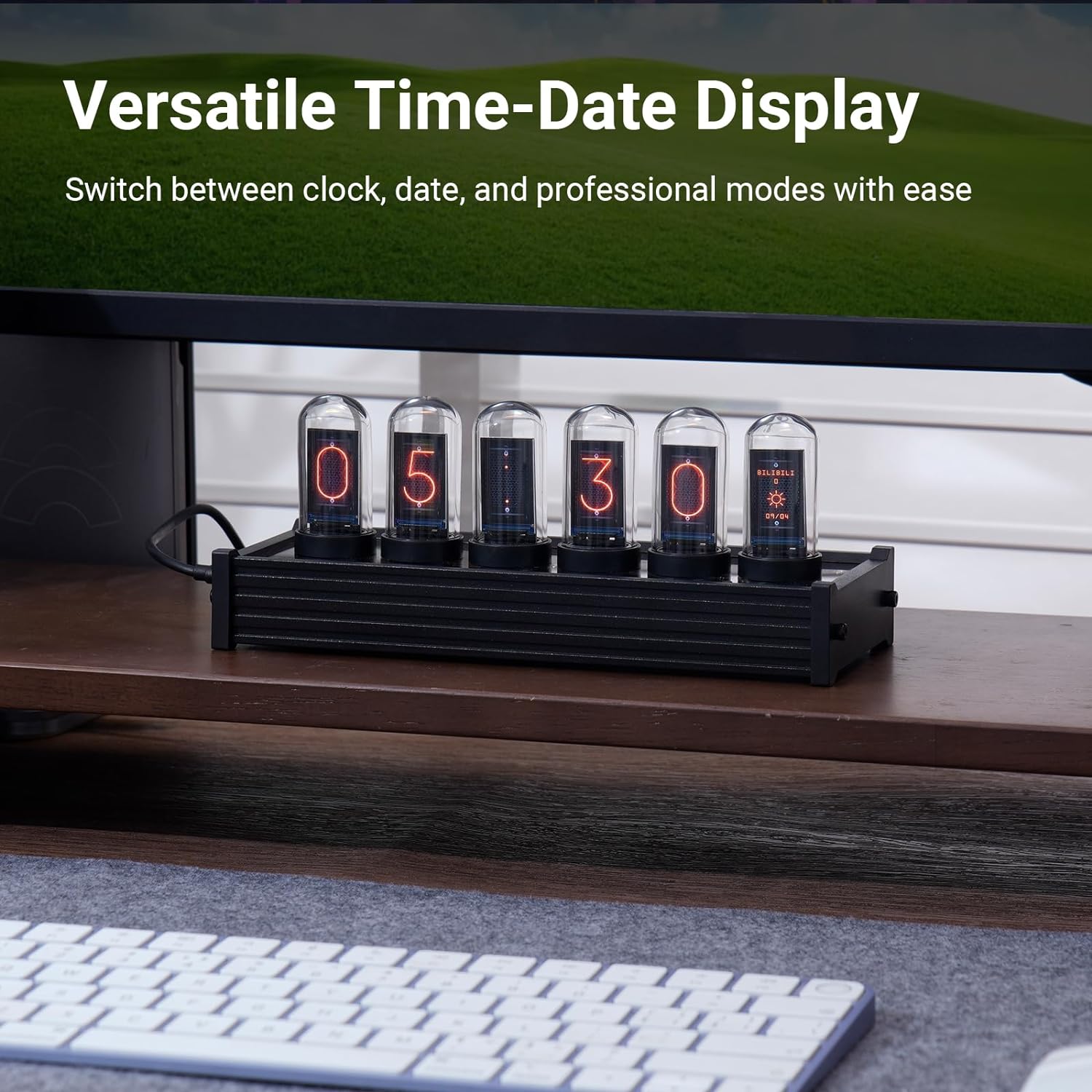 With its glowing retro-style tubes, it turns telling time into a captivating visual experience. Its carefully crafted, warm design draws attention and adds a distinctive atmosphere to your office, living room, or bedroom. More than just a clock, it’s a true collector’s item for lovers of vintage design and tech.