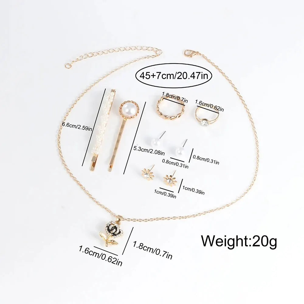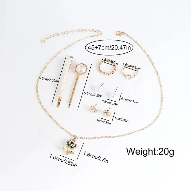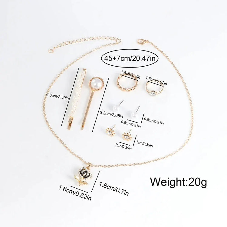 Treat yourself or surprise a loved one with this stunning 10-piece set designed for modern, elegant women. It includes a round, minimalist watch, trendy hairpins, earrings, a necklace, and matching rings.