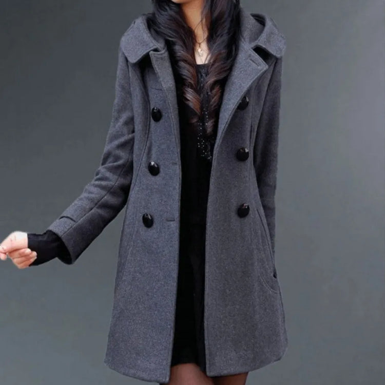Discover our women’s winter wool coat combining warmth, elegance, and comfort. Designed to brave the cold, it features a long, sleek silhouette with a flattering slim fit, a practical hood, and timeless double-breasted closure.