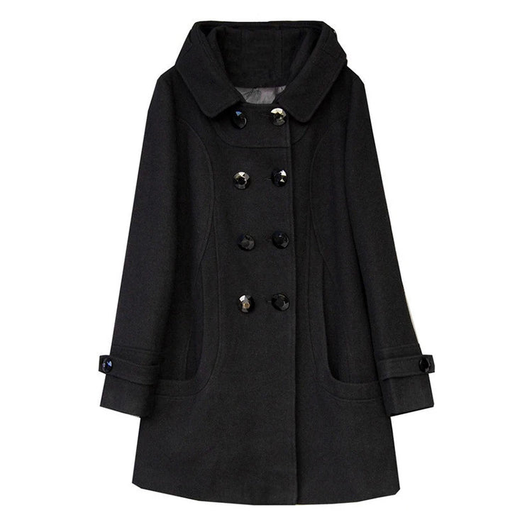 Women’s Long Wool Coat with Hood – Windbreaker Double-Breasted, Plus Sizes up to 5XL