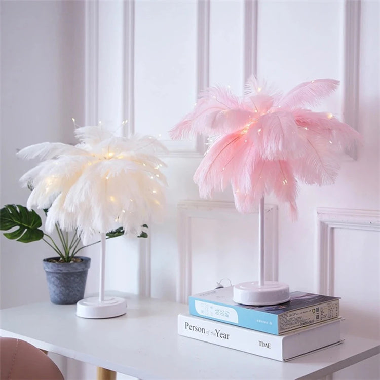 Add an elegant and cozy touch to your interior with this LED nightlight featuring real feathers. Its soft light creates a soothing atmosphere, perfect for the bedroom, living room, or any cozy space. With genuine ostrich feathers and integrated LED beads, this lamp combines style and functionality.