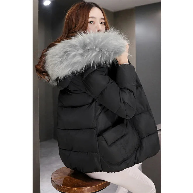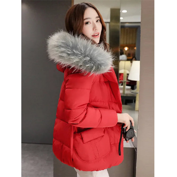 Women’s Short Winter Coat with Faux Fur Hood – Warm Plus Size Parka S–2XL
