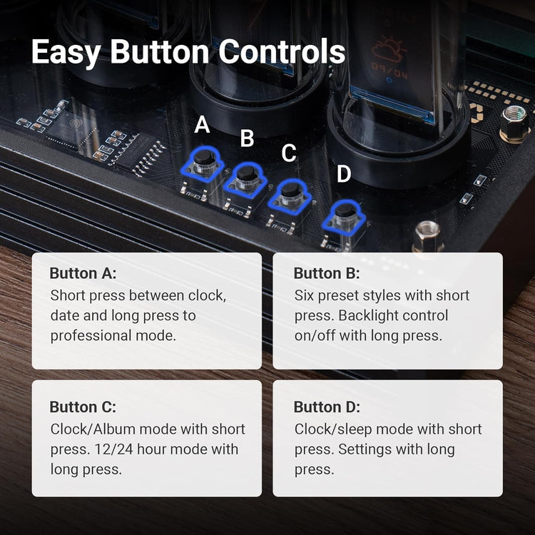Bring a unique, character-filled accent to your interior with the Modishmik Elekstube xCool Nixie Clock. Inspired by the iconic 1960s Nixie tubes, this clock perfectly fuses vintage charm with modern technology to create an exceptional, eye-catching centerpiece.